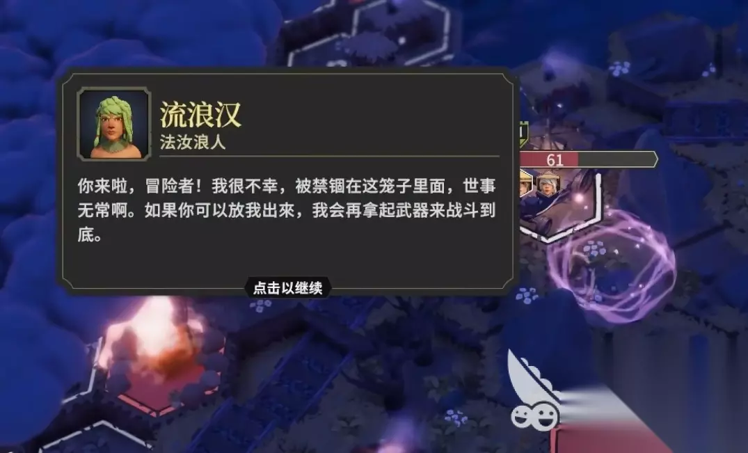 3、流浪汉 流浪汉是需要一定运气才能进行解锁的角色,各位在游玩任何对局时,都有概率能遇到一辆囚车。当各位从囚车里解救出流浪汉后,便能将他解锁。若玩家遇到后不久,那下次依旧有概率能遇到,不用担心会消失。 4、僧侣 解锁僧侣的前提是学识之书达到8点,且需选择冰雪冒险故事。等自己探索到了颤抖森林这个区域后,就能找到僧侣所在的洞穴,击败里边的所有怪物并在僧侣的请求中选择放他下来即可。