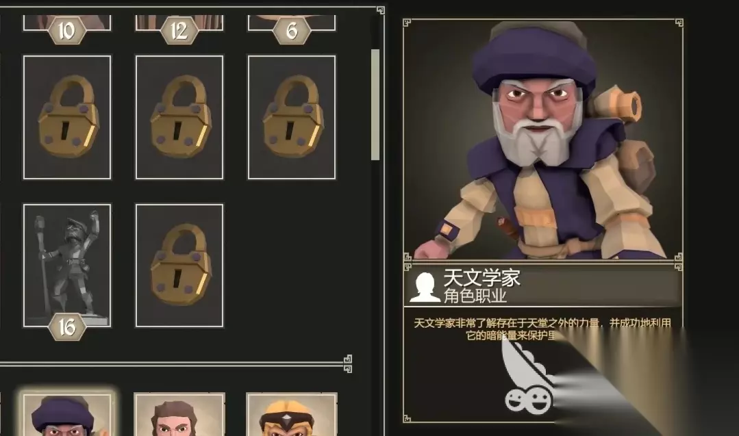 1、初始角色 初入游戏后人们各位无需解锁就能获得四名初始角色,他们是铁匠、猎人、吟游诗人和学者,同时他们也将成为各位前期最常选的角色,并能用他们参与为了吾王的冒险来帮助解锁其它的角色。 2、学识之书解锁的角色 通过收集学识之书中的点数,各位也能在点数达到一定数量后消耗它们来完成角色的解锁。其中,卖艺人和设陷者的解锁要求都为10点,草药师则要14点,最后一位由学识之书解锁的角色樵夫则高达18点。当四名角色全部完成解锁后,人们需要通过学识之书来解锁的角色也就全部收集到手了。