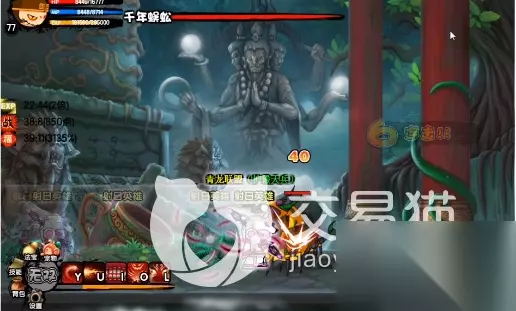 千年蜈蚣BOSS在玩家使用悟空的时候先在远处使用火眼进行远程攻击,在这个过程中注意规避BOSS的毒针伤害和冲撞技能,最后直接使用八卦进行眩晕火使用与竞品缠绕就可以杀死蜈蚣了,挑战的技巧为最好使用眩晕技能,中毒技能或者是冰冻技能,要将BOS给控制住,如果控制不住的话,千年蜈蚣的攻击评率过高,手残玩家很难通关。