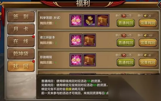 总结 在游戏的后期,服务器的等级开放是比较慢的,往往几天才提升一级,所以小伙伴们的等级可以跟服务器等级保持一致,高上1-2级也是可以的。练级太快的话,经验获取是非常的少。根据服务器的等级来练级就可以了。所以游戏后期,练级会比较轻松,一些任务和活动,可以来选着做。在福利系统中,还可以用铜币和元宝来找回前一天没有参加的活动,很方便。