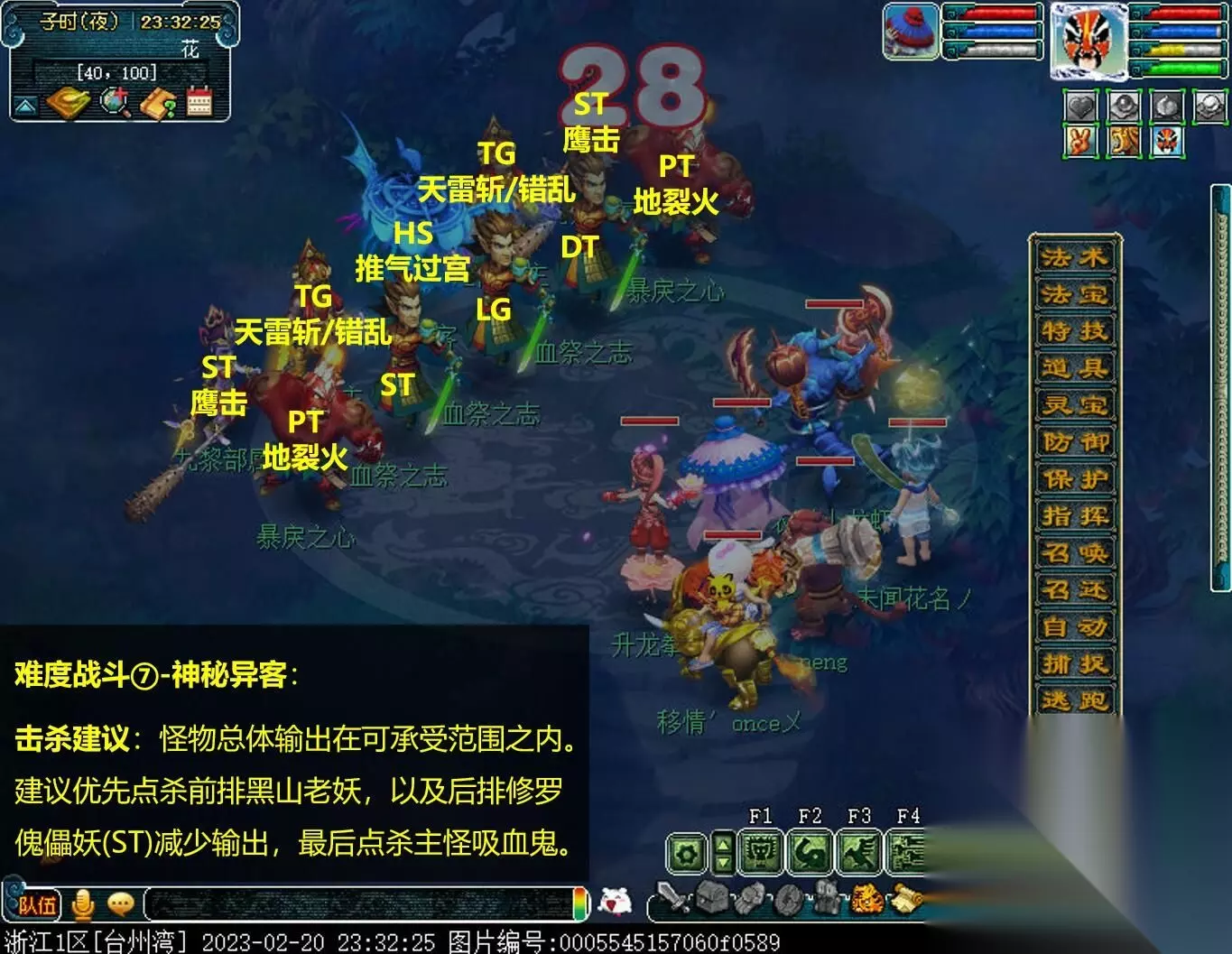 难度战斗⑦-神秘异客: 击杀建议:怪物总体输出在可承受范围之内。建议优先点杀前排黑山老妖,以及后排修罗傀儡妖(ST)减少输出,最后点杀主怪吸血鬼。 31.听听绝尘上仙还有什么话要说。〔对话〕