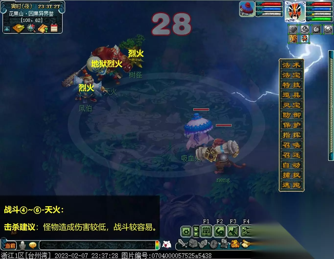战斗④~⑥-天火: 击杀建议:怪物造成伤害较低,战斗较容易。 30.本想去看看绝尘仙人处情况如何,却发现神秘异客也在。〔难度战斗⑦,建议组队〕