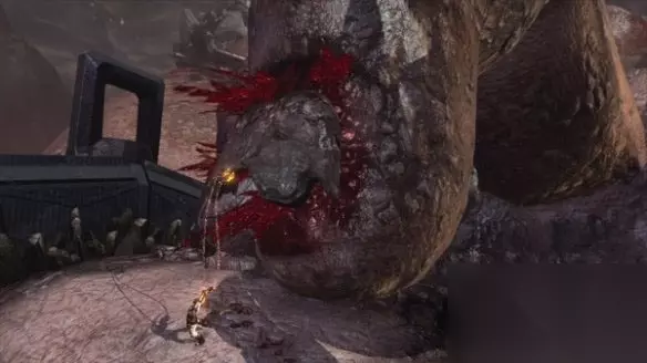 克洛诺斯将奎托斯吃进体内,顺着克洛诺斯的咽喉用R1下滑,注意阻挡道路的障碍,然后在克洛诺斯的体内使用“斯巴达之怒”切开克洛诺斯的肚子……太他喵了个咪的血腥了。