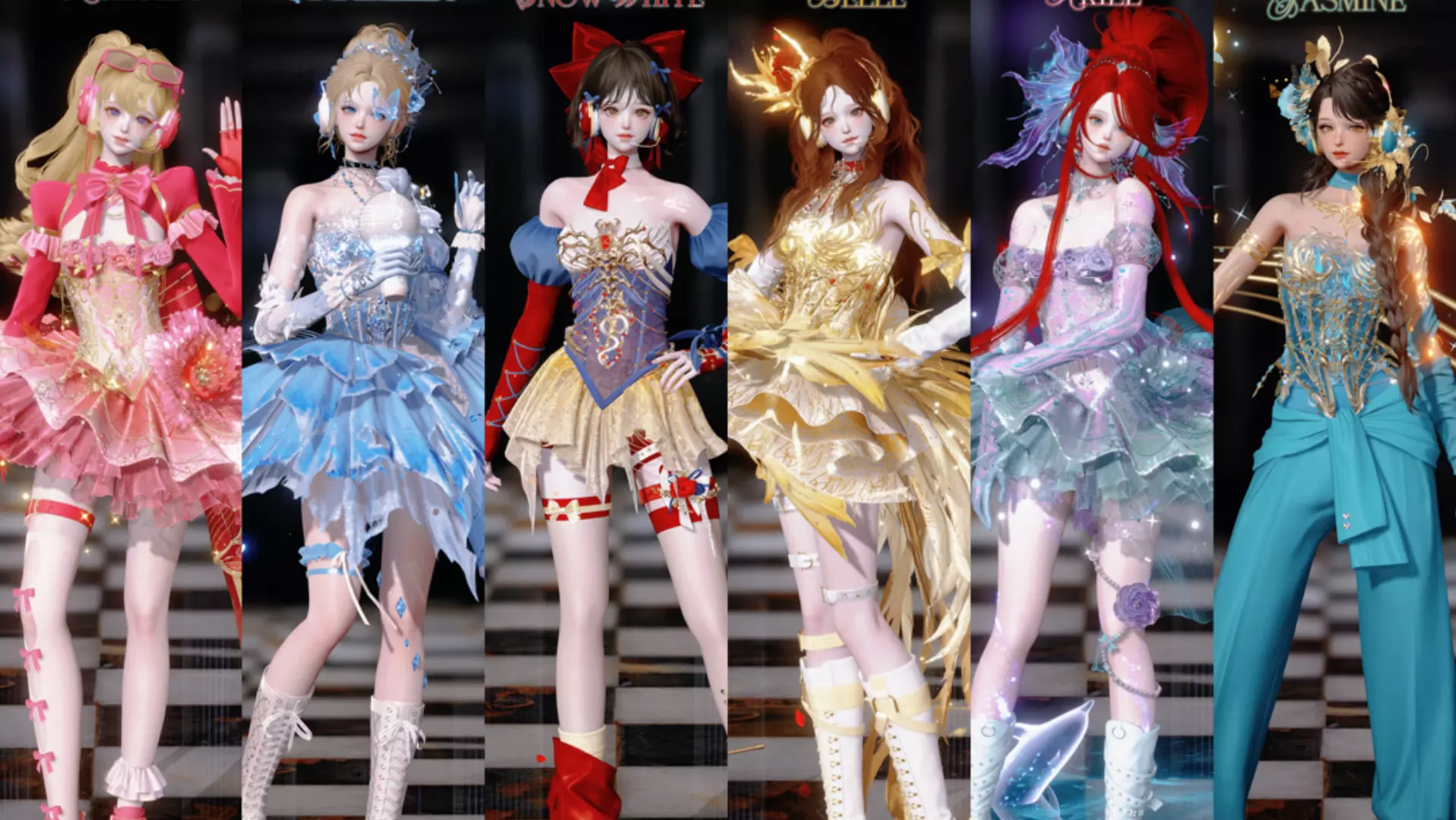 这是《以闪亮之名》的迪士尼公主血族if线创作,呈现了血族化的白雪公主、爱丽儿、茉莉等迪士尼公主形象,暗黑风格十足,带来不一样的公主演绎。