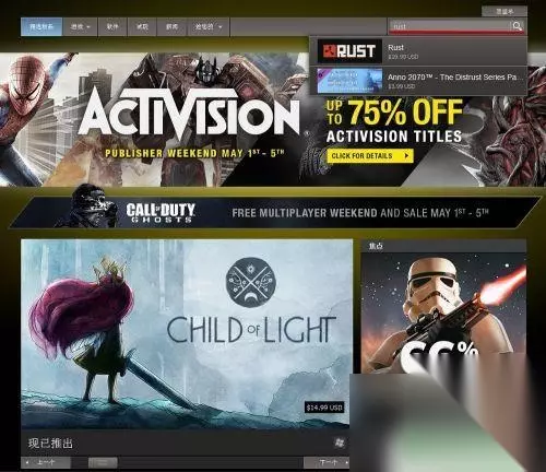2.二、进入后在右上角输入游戏名称:rust