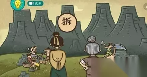 15、愚公移山 将左边人衣服上面的字移动到山的上面就可以了,移动后就会发现这个人身上是一个“拆”字;