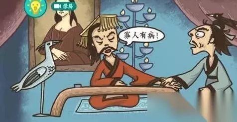 8、扁鹊见蔡桓公 一直点扁鹊的嘴说“您有病”,到后面的时候会说“您没病”,这个时候蔡桓公就会说出“寡人有病”这句话了;