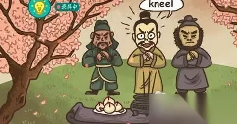 11、桃园结义 从左边开始点,关羽点一次、刘备点一次、张飞点两次、烧鸡点一次,拼成单词kneel成功结拜;
