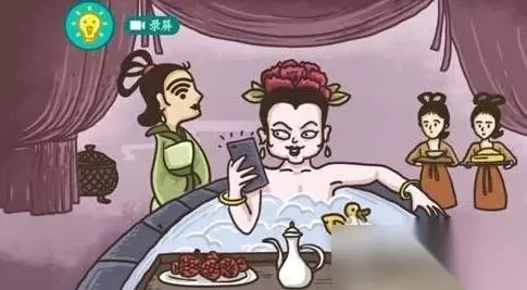 2、妃子笑 点击左边侍女的眉毛,点击后侍女的眉毛会变成无线的标志,这个时候妃子的手机就会有网络了,成功过关;