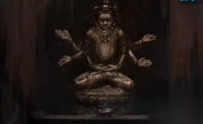结合之前书里的线索来推理地面上的文字线索,得到死寿禄福这四个字对应的文字,切换到男主视角在柜子的密码锁上输入死丧生死,打开柜子拿到雕刻用的凿子。来到后山的木屋处,使用凿子和石龟把六葬菩萨雕像的头颅给取下来,拿到佛头,随后将佛头和石龟一块丢到汤婆婆身后的一条河流之中。切换视角到女主视角,使用拐杖让佛头移动,刚好把佛头挪到地下密室的机关上面后停止。这样再切换到男主视角后,让男主也来到地下密室之中。
