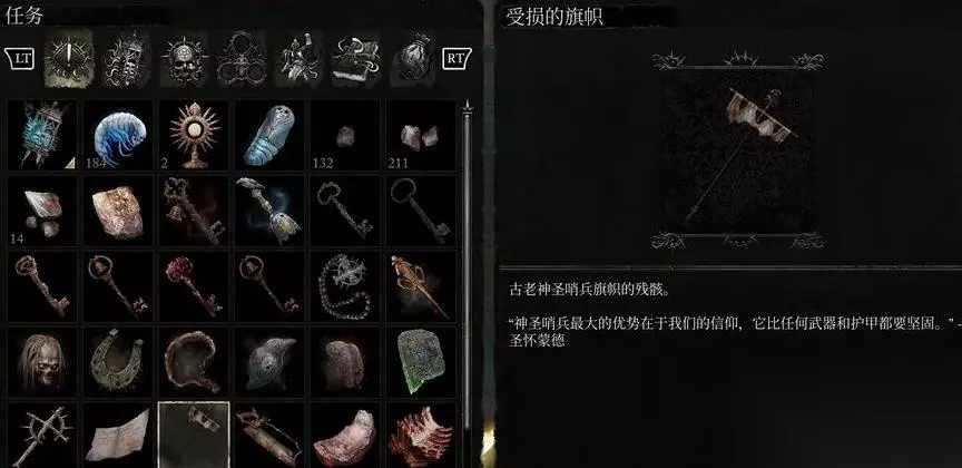 4、任务道具受损的旗帜:古老神圣哨兵旗帜的残骸。