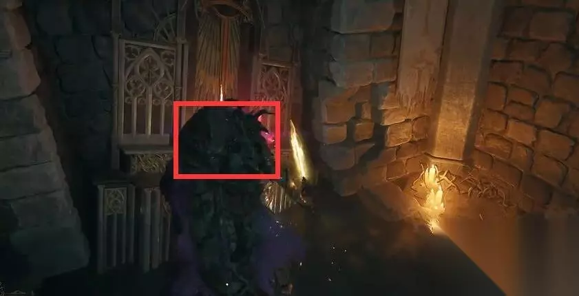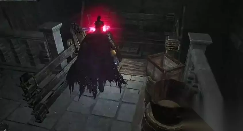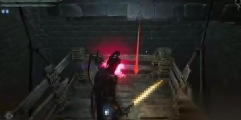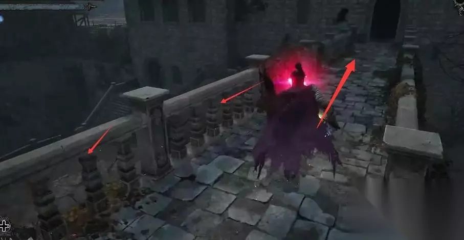 堕落之主任务道具受损的旗帜获得方法攻略 1、玩家到达图中所示位置,顺着通道从建筑左侧的楼梯往下走。