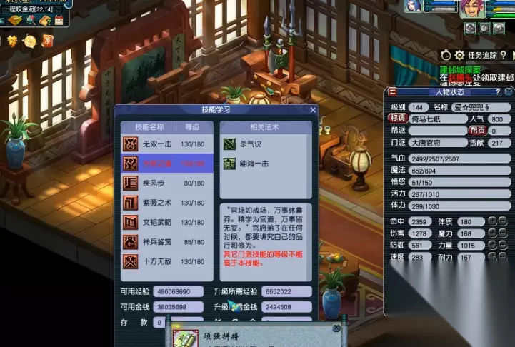 飞升的话,你得先满足两个硬性条件。首先角色等级必须达到135级其次要有任意6项师门技能达到130级。这里通过法宝或符石组合增加的技能等级是不算数的。达到这些条件后,就可以去月宫找吴刚开启飞升任务了。飞升可不是简单的事情,需要做好充分准备,包括足够的经验、金钱和装备。