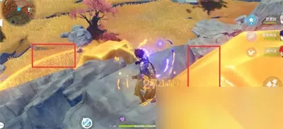2、利用风场前往指定区域,到达巨石的旁边;