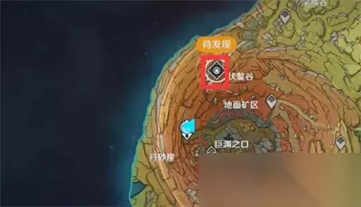 1、首先前往层岩巨渊,位置如下图,在这里可以找到一个圆盘,在圆盘上放一个岩造物,激活机关后开启风场;
