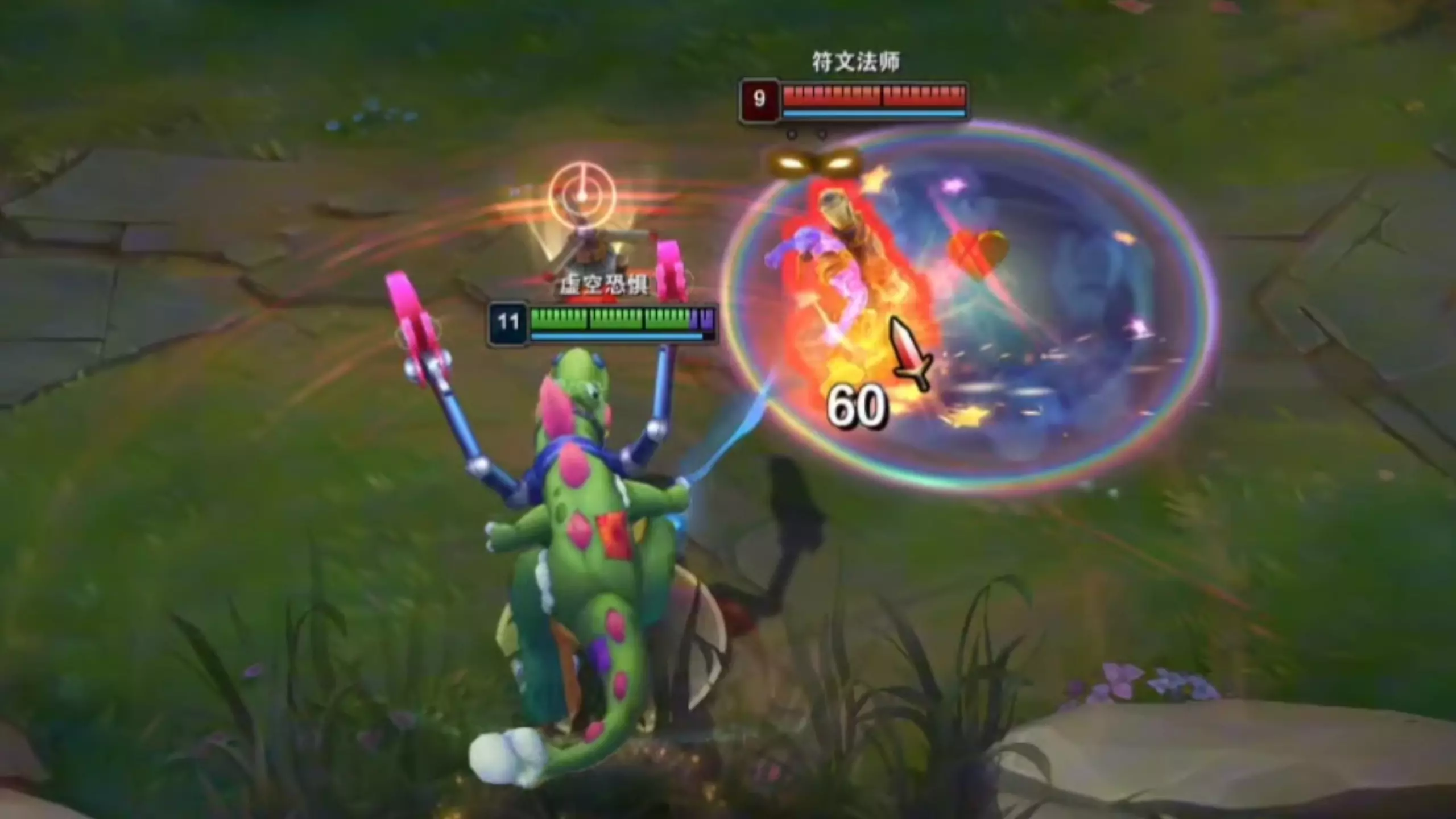 这是《奇迹MU》韩服测试服改版后的符文法师演示内容,展示了符文法师在战斗中的技能释放、打怪输出的表现,呈现了该职业改版后的战斗效果与伤害数值。
