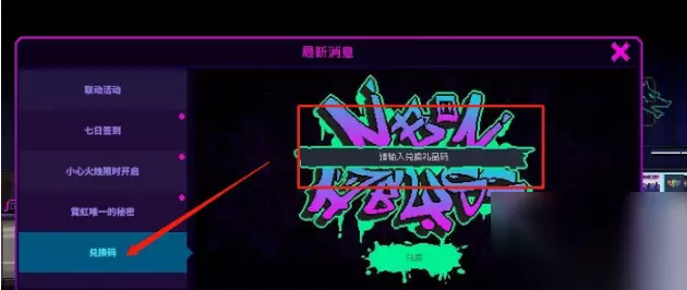 3、进入后要先点击左侧的兑换码,然后在右侧的空白处输入自己的兑换码,最后点击下方的兑换即可成功兑换游戏内道具