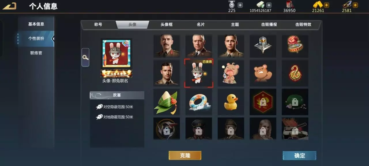 头像可以用那兔,那兔头像是目前版本唯一一个有加成的头像,虽然不多,但麻雀虽小五脏俱全,有总比没有好,而且那兔挺好看的