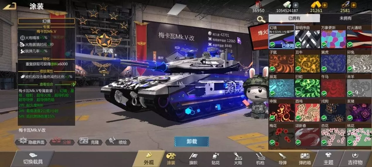 然后梅卡瓦的研修里有4400耐久(比90铲多1000),另外还有10%抗燃