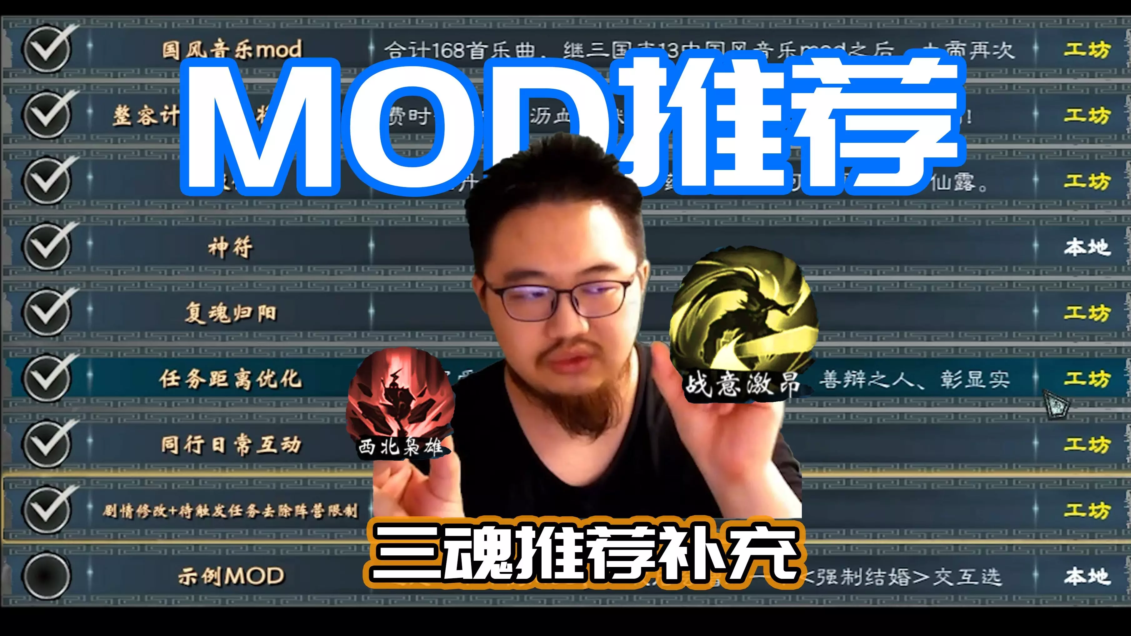 本期视频内容为MOD推荐,以及对上期(第三期)三魂天赋技能推荐的补充 关于建立势力和打工/在野玩法,为什么说历练功能有缺陷,玩家实际只能二选一 因为玩家无法操控…