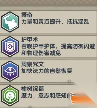 1.振奋,抵抗混乱是一个非常实用的效果,加的力量灵巧也能用来方便偷东西,在各种场合都用得到。 2.护甲术,防御和闪避都是非常重要的属性,物理伤害减免也很使用,唯一可惜的是不能对坐骑生效。 3.洞察咒文,法师神技,之前的攻略当中提到过,练高了以后直接10回合回满蓝(冷却50回合)。 4.榆树祝福,超长的持续时间(10级就有一千多回合),加的三个属性量也是跟着技能越来越高。 5.脆弱之雾,防御闪避减半,能给中立怪放,升级高以后不容易被抵抗,等级高了以后打BOSS的时候简直不要太好用。 6.加速,50回合可放一次,随着等级提升速度和持续时间都会有所提高。 7.瞬间移动,下楼梯被巫妖包围?直接开溜,跑图也能用,不过飞来飞去自己就晕了。 8.怪物召唤,练高以后怪物强度提升,可以拿来吸引守卫,甚至屠城然后随便偷东西,还可以引走公会的看门人。 另外还有一些魔法也是非常好用,比如鉴定、造门术、归还等,在特定场合能够发挥出很强的效果,为玩家节省不少事情。智者的加护对于玩家读书帮助非常之大,但是后期读书技能等级上去之后作用也就慢慢变小了,这些都是可以考虑的技能,各位玩家可以自行斟酌学习。 以上就是小编为大家准备的全部内容啦,希望对大家有所帮助。