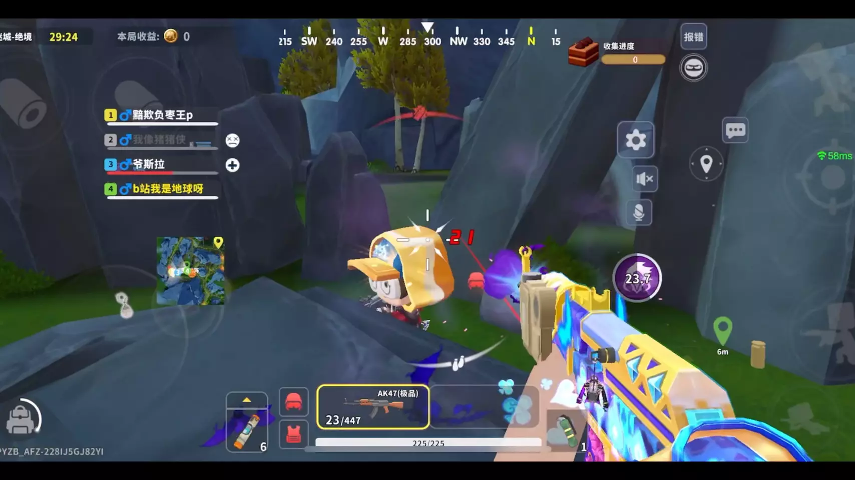 这是《迷你枪战精英》的游戏内容,展示了玩家使用完美级ASh 121枪械,在暗夜迷城普通关卡战斗、换弹、治疗的过程,玩家为了上游戏传奇段位全力奋战,本局也收获了不少收益。
