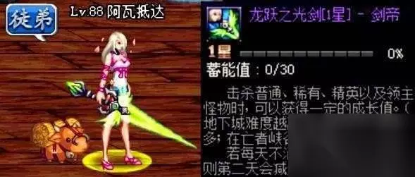 龙跃武器升级到7星后会变成神器武器,随升级的次数一共有3种外观变化达到升级条件后在小铁柱物品店中购买道具来升级,在80版本刚出的时候这把武器是平民的福利,但是你每天蓄能值不够的话,第二天会掉20%成长值。龙跃系列武器是在小铁柱中接取成就任务即可领取的,所有职业进行二觉后都会赠送的一把武器。