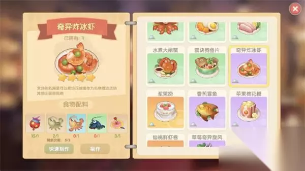 摩尔庄园手游奇异炸冰虾怎么做?摩尔庄园手游奇异炸冰虾做法是什么?接下来和233乐园小编一起来看看摩尔庄园手游奇异炸冰虾怎么做吧! 奇异炸冰虾: 主:奇异果x2 副:冰川虾x2,冰川红虾x1,螯虾x1,毛毛花x1