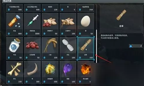 4、最后玩家就看在商品页面里找到皮革了。