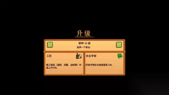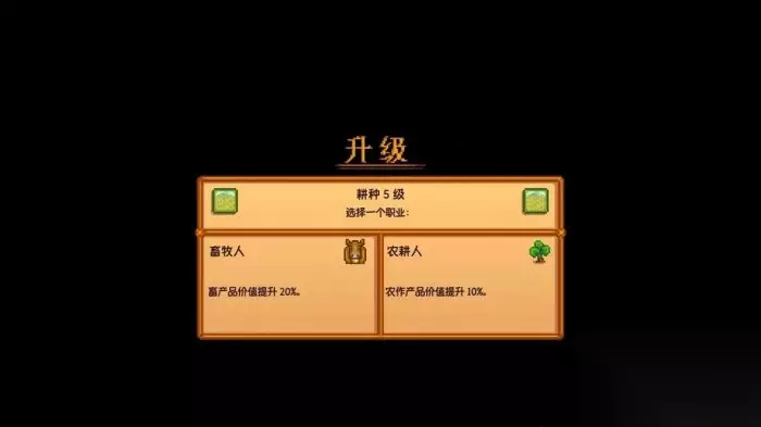 畜牧人: 畜产品价值提升20%(包括动物制品,比如布料,奶酪,蛋黄酱等均受影响,但松露不受影响) 农耕人: 农作产品价值提升10%(农作物的售价提高10%) 选择畜牧人后的十级专精选项