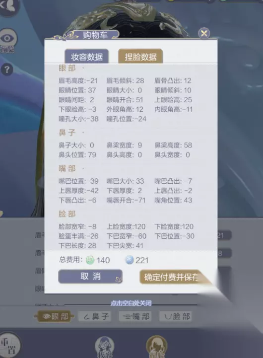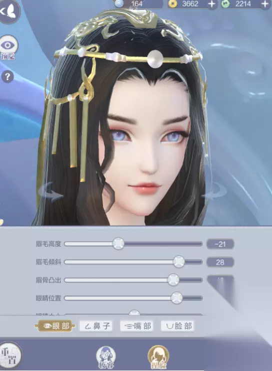 眼部 眉毛高度:-21 眉毛倾斜:28 眉骨突出:12 眼睛位置:37 眼睛大小:0 眼睛倾斜:10 眼睛间距:2 眼睛开合:51 上眼睑高:25 下眼睑高:-3 外眼角高:12 内眼角高:-11 瞳孔大小:-38 瞳孔位置:-24 鼻子 鼻子大小:0 鼻梁宽度:9 鼻梁高度:58 鼻头位置:79 鼻头高度:0 鼻头宽度:0 嘴部 嘴巴位置:-39 嘴巴大小:33 嘴巴凸出:-7 上唇厚度:-42 下唇厚度:2 上唇凸出:-2 下唇凸出:-6 嘴唇开合:-71 嘴角位置:43 脸部 脸部宽窄:-8 上脸宽度:120 下脸宽度:120 脸蛋丰满:-26 下巴宽窄:-60 下巴位置:-30 下巴长度:28 下巴尖宽:41 小伙伴们如果想要捏出焰灵姬的脸,就可以按照上面的捏脸数据来捏,基本上就可以捏出一个大差不差的焰灵姬了,大概有百分之八十的相似度。当然,小伙伴们也可以基于上面的捏脸数据再进行微调,这样也可以捏出一个更符合自己心仪的焰灵姬脸。