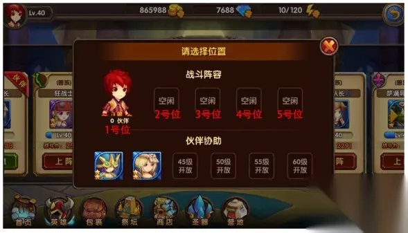 如同大多数卡牌游戏,酷酷爱魔兽的队伍组成由五名上阵英雄位+六名伙伴协助位组成。其中伙伴协助位的个数随等级的提升而增加。
