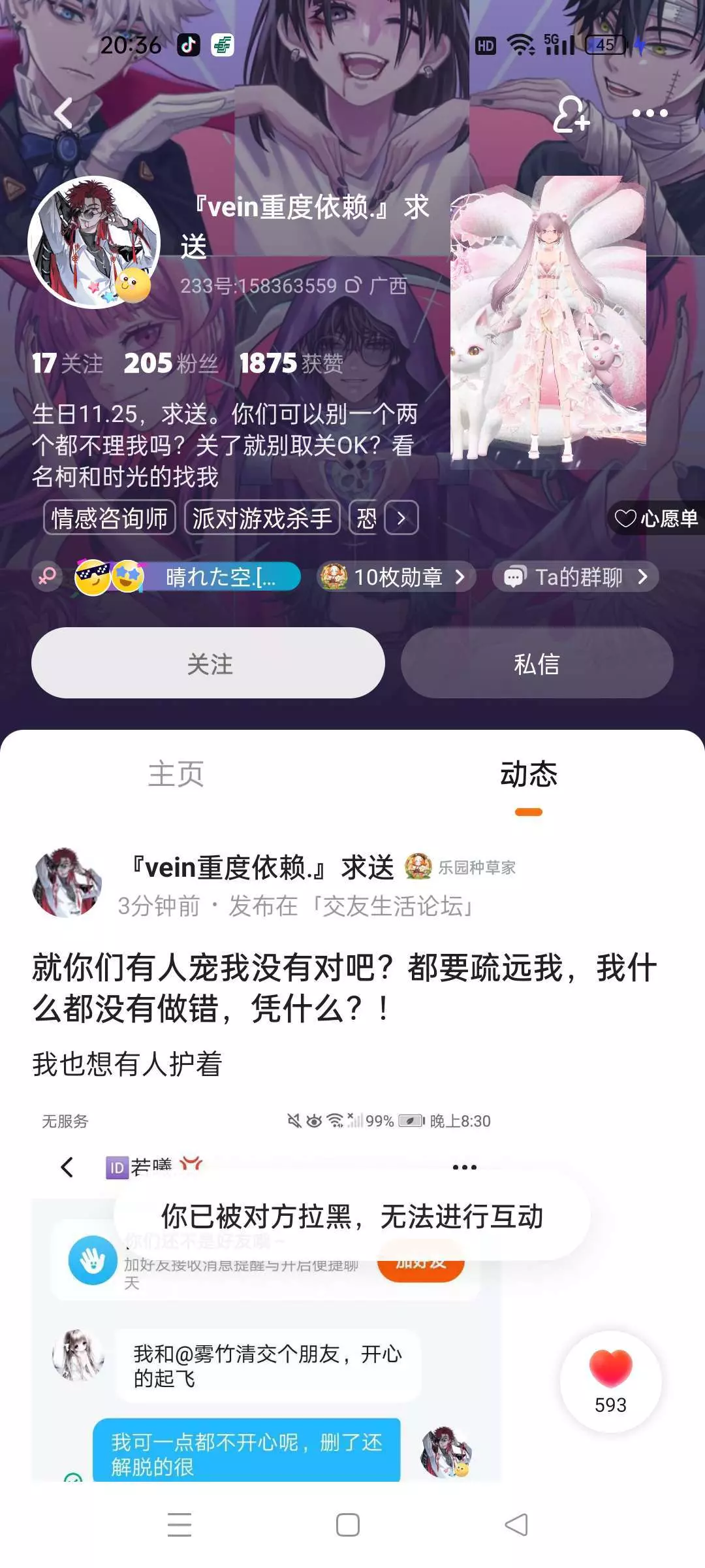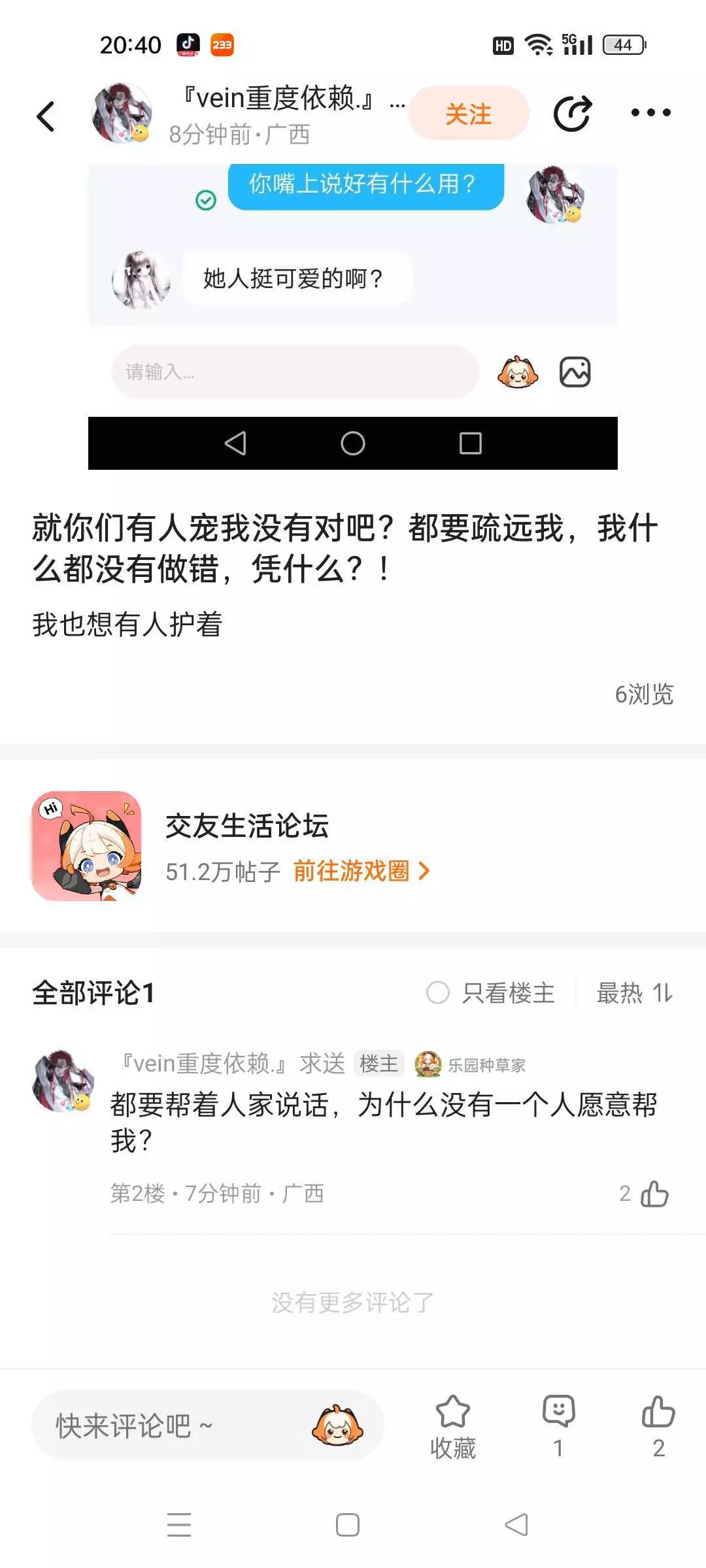 2.我现在只想说一句,反正现在也拉黑了,你也太玻璃心了吧,我跟我朋友玩游戏,你突然就进来说什么莫名其妙的话。然后我每次都是抛下我的朋友去安慰你,可是我现在真的烦了
