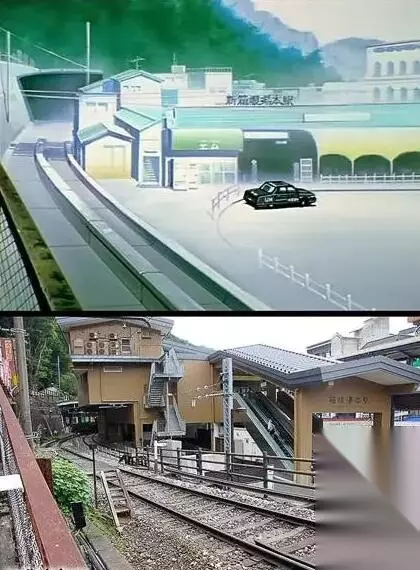 EVA的TV版中箱根汤本站对比考据。汤本站在21世纪初对站外进行了改造,所以和动画中的车站造型完全不同了。但是在网上看过上世纪九十年代的照片,的确是动画中的样子哦~