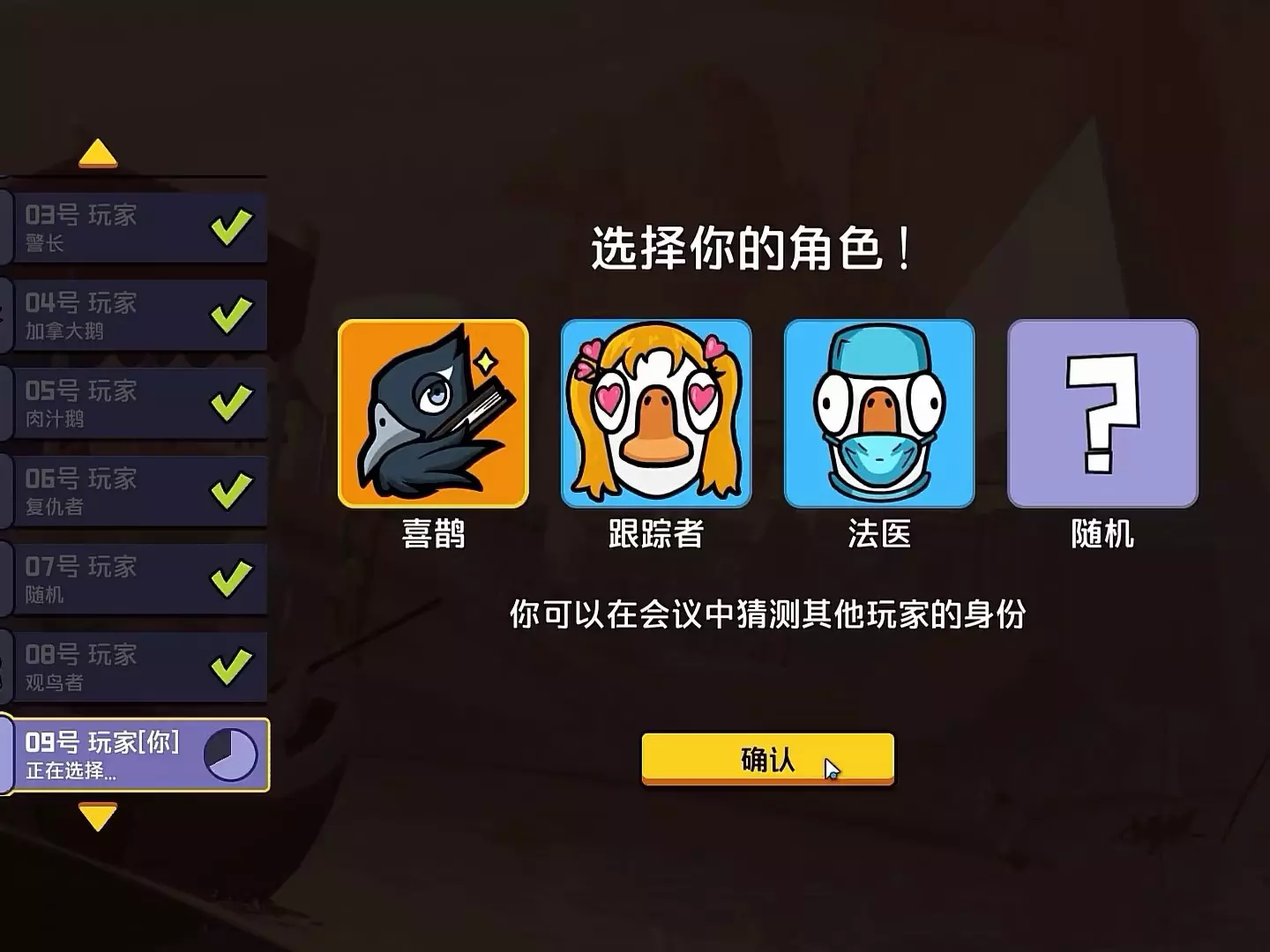 也是好久不见的鸭片(?)很正常好吧 鹅鸭杀巫医X专业杀手 刺客X间谍 隐形鸭X变形者 食鸟鸭X掠夺者