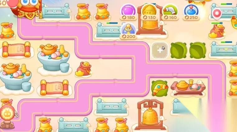 4、在中间买一个雷达,打下面钱袋,钱袋打掉建立雷达,继续清理左边障碍物,清理之后继续建立雷达,右边输出不够增加几个回旋镖。