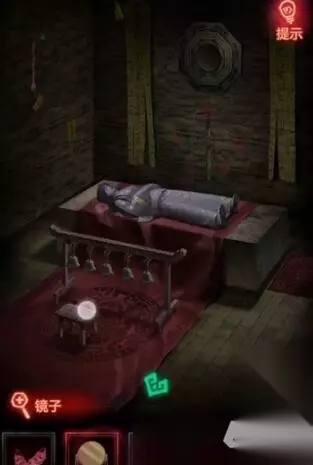 16、最后我们到娘子身体房间点击八卦镜,用弹弓点击镜子打碎,再点击铃铛,重新开始招魂,点击铃铛过剧情游戏就到这里完结了。