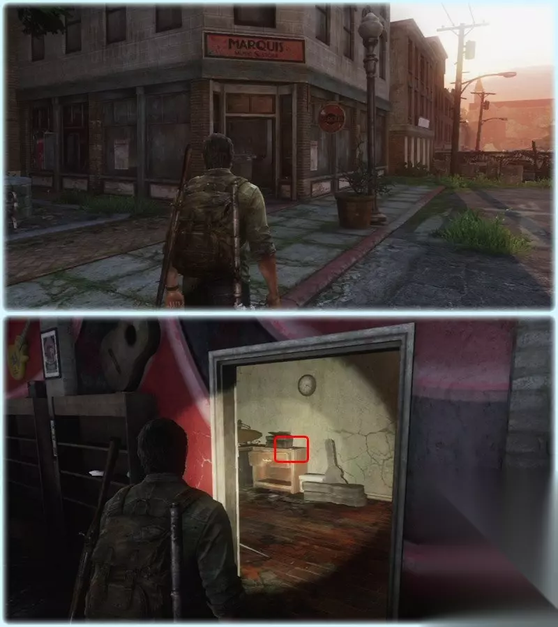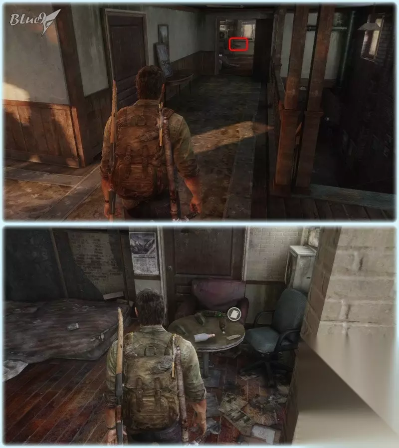 进入这个厂房后乔尔踩到了机关被倒吊起来了,之后艾莉负责解开绳索,而乔尔要倒着开枪消灭过来的变异者; 战斗分2个阶段,第1阶段艾莉不会受到攻击,第2阶段要保护艾莉不受到致命攻击;最后比尔出现,跟着比尔边跑边战,途中的小巷和洗衣房都会出现敌人 «567891011121314»友情提示:支持键盘左右键"←""→"翻页 Safehouse 藏身处 3遗留物 1火萤垂饰 1训练手册 1对话 遗留物22 Bill's Map 比尔的地图