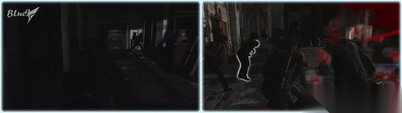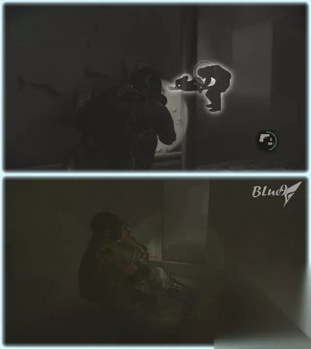 这里战斗区分几部分,每个部分都有3个左右的敌人,不过打法简单,基本上靠着门边或者躲在桌子后等着敌人过来都可以绞杀