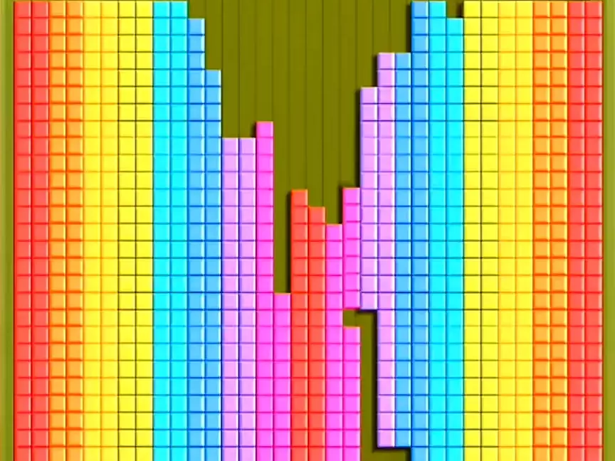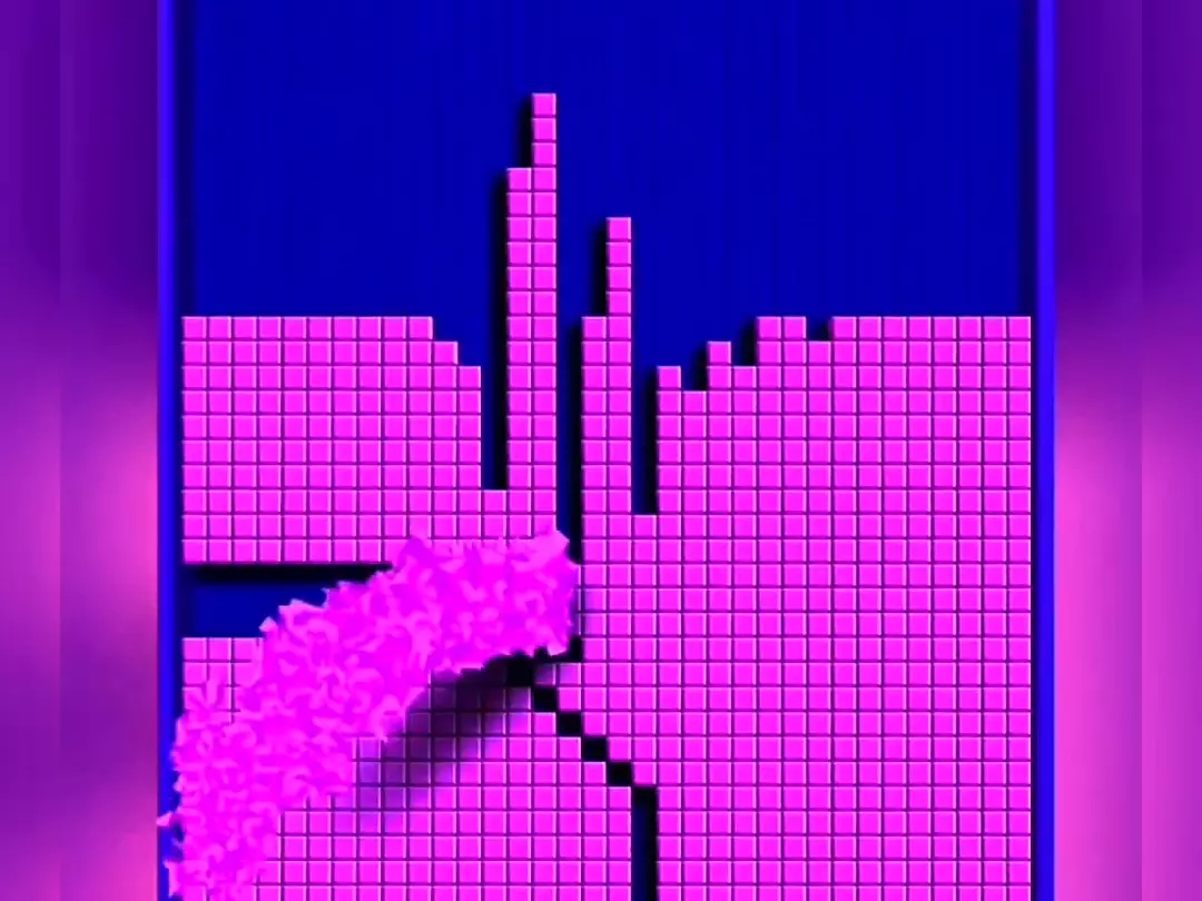 这是经典游戏俄罗斯方块的创意展示,它是8090后的经典回忆,有着解压的游玩体验,画面呈现出方块消除的炫酷特效,充满怀旧感。