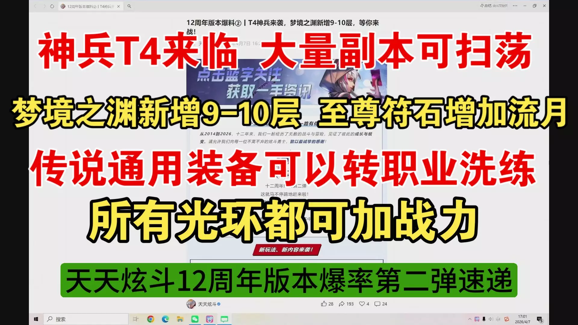 《天天炫斗》2026年2月27日版本更新,推出装备毕业减负举措,梦境之渊装备爆率翻倍,还免费送武器防具神石加速毕业;同步开启娜美快跑等活动,还有充值返利、月币兑换更新等内容。