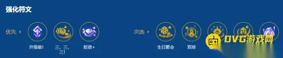 三、强化符文 阵容为5费卡运营阵容,在符文选择上请优选经济符文。至少二经济,否则很难成型