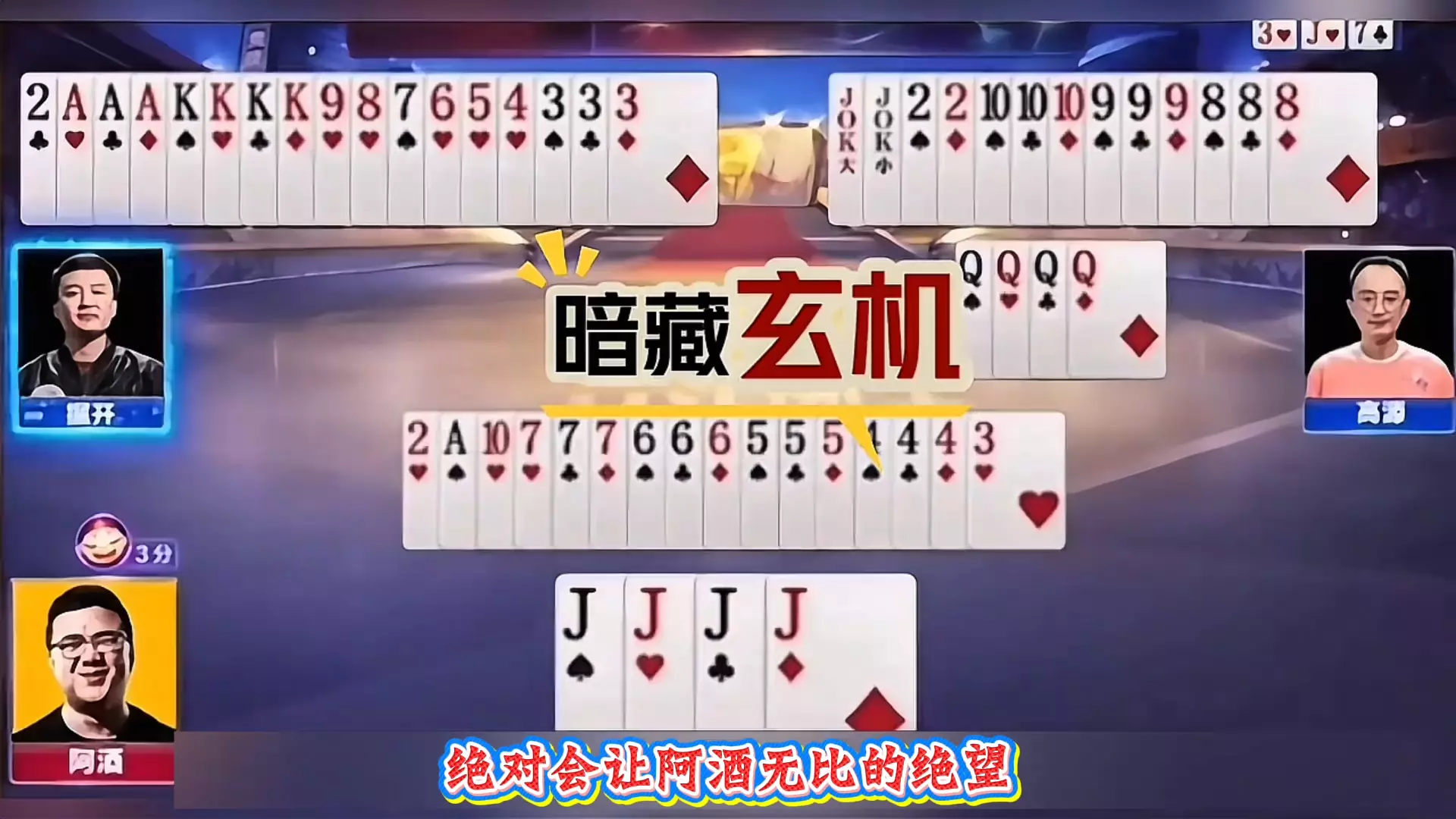 这是JJ斗地主S7春季赛C组16进8阶段的对局,四川天门淘一街与浙江杭州汉资对战,马小星所在的牌局中,选手们出牌有炸弹、拆2探王等操作,牌局看点十足,展现斗地主的精彩对战。