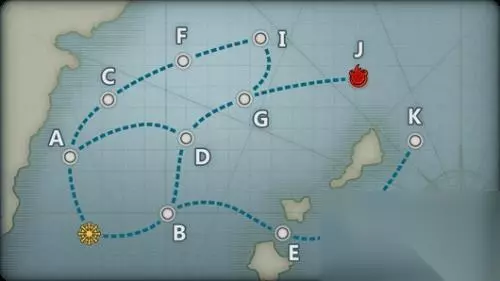 带路条件 start点带路条件 start→A★★ start→B★★ A点带路条件 舰队中驱逐≤2则A→C A→C★ A→D★★ B点带路条件 舰队中航母≥2则B→E B→D★★ B→E★ G点带路条件 高速舰=6则G→J G→I★★★ G→J★ 配置和流程 首先说配置,两种过关方法,1看脸,2舰队全高速。 第一种方法,看脸,这样可以把你现有的舰队主力都带上,例如带bb,但带bb或者其他低速舰队极其容易沟点,不容易见到boss(能见到boss都是脸真好)。 第二种方法,舰队全高速,理由就一个,进入J点有个条件是舰队高速舰船>=6。 推荐配置,4BB2CV全火力装,A点进D点的条件是有3DD,B点进D点的条件是CV小于2(可以带CVL刷)或者,全高速舰队,可以带高速的bb,cv要<=2(cv数量要求是确保D会不会沟) 正常流程,开图A B几率差不多,但是为了boss好打,建议走B。走A点有3dd可以进入D点,否则大退就好。B点,航母<2可进入D,>2沟入E点。D点开 始顺风到boss门口,此时若有BB极大几率沟I(脸好见boss),若是舰队全高速,则boss。 难点:要注意进入D点的条件,这也是沟图要点出产:DD,CL,CVL(几率未知) 2-3坑点 首先是起始点A B概率相同,都能到达D点不过为了后面前进的方便我们推荐走B点、如果进了A点也不用在意,大退即可。 接下来是B点,B点开始你就会遇到沟点了哦,DD>=2就必进E点哦。如果不是一般都会高几率进入D点。如果进了E点就和J点分道扬镳了,进E点后如果不想浪费时间和资源补给的话,和刚刚一样大退即可。 进了D点后可以一路高歌到G点不会有沟。 G点之后!此图可以称的上沟点的地方出现了!如果高速舰>=6艘那么我们将妥妥去见BOSS,如果大家怕火力不够使用了BB的话,就可能会沟I点,而且是大几率进I点,所以大家要好好权衡一下自己的火力和赌脸问题哦!