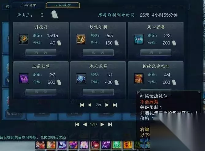 神级首饰升级道具兑换 为普及神隐装备铺路 我们都知道自从昭武装备上架以来,昭武帽子和昭武鞋子已经可以全部免费获得了,但是后开启的新区怎么办,游仙录就很好的解决了这一点,总体来说提高了碎片的兑换量,而且还加高了月德符的兑换数量,使更多的玩家去提升昭武装备!从而使得神隐装备得到普及。就像当年九旒装备的普及一样!