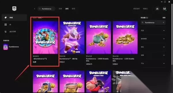 如果没有找到的话也可以在商城中直接输入“Rumbleverse”搜索,加入库中即可下载游玩。
