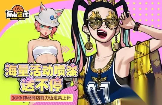 福利远不止于此,球友在参与比赛的同时,达成指定在线时长任务,每周总共能领到“1335活动喷漆(7天)”,完成4周任务可获得“活动喷漆随机箱”道具,最高有机率获得“58,800活动喷漆”哦! 此外,<神秘商店>也迎来新一轮更新!商店内将上架“[能力值]代号-3四驱车自选箱”、“[能力值]鬼怪口罩(红)自选箱”、“永生将军头盔”以及“必胜!章鱼庆典(黑)”多款能力值道具,助力球友称霸球场! 春日福利已就位,海量好礼等你来拿!即刻登录《自由篮球》尽情享受赛场乐趣!