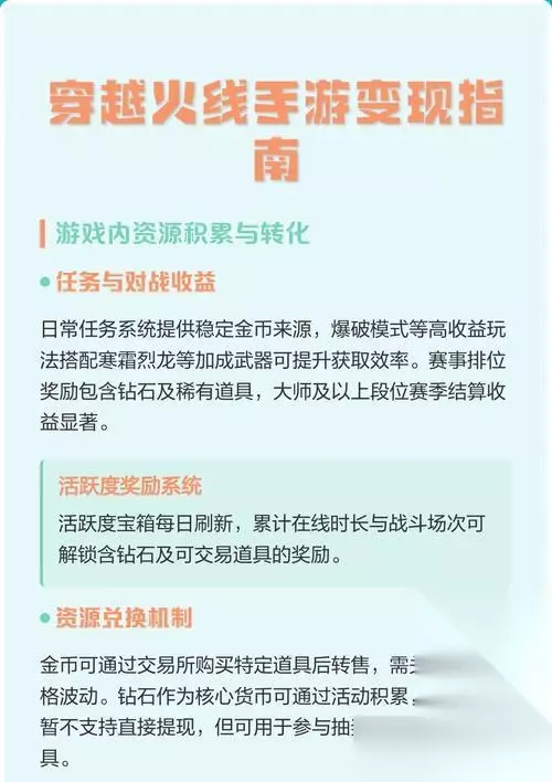 《穿越火线》(CrossFire)是一款广受欢迎的在线第一人称射击游戏,吸引了数以百万计的玩家参与其中。对于许多玩家来说,除了游戏本身的乐趣之外,如何在游戏中获得收益也是一个重要的话题。本篇文章将详细指导你如何在《穿越火线》中获得收益,无论是通过游戏内成就、竞赛还是通过游戏外的途径。 想要在《穿越火线》中获得收益,首先需要在游戏技能上有所突破。不断提升个人技能不仅可以帮助你在游戏中取得更好的成绩,还有机会获得丰厚的奖励。 1.1熟悉地图与武器 在《穿越火线》中熟悉地图布局至关重要,这样你可以更好地制定战略和选择合适的位置。同样,掌握不同武器的特点和优劣同样重要,它可以帮助你在游戏中做出快速反应。 1.2参加游戏内活动 游戏经常举办各类活动,诸如限时比赛、节日庆典等,这些活动通常会提供额外的奖励,比如稀有装备或游戏货币。积极参与这些活动,可以帮助你获得额外的收益。