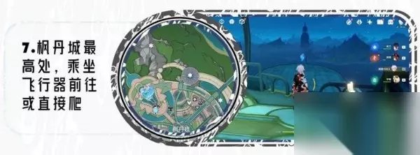 7、枫丹最高处,可以乘坐飞行器前往。