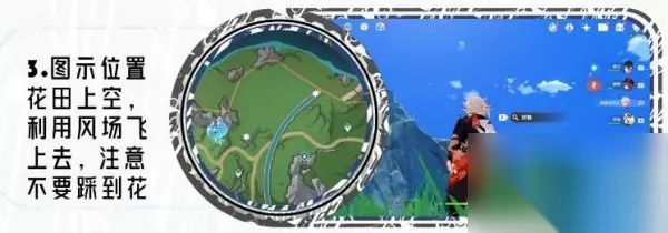 3、花田上方,利用风场飞上去。